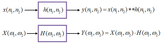 有了卷积定理,一切变得简单:LSI系统在空域的二维卷积运算,等于该系统在频域的乘积运算: