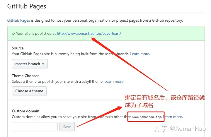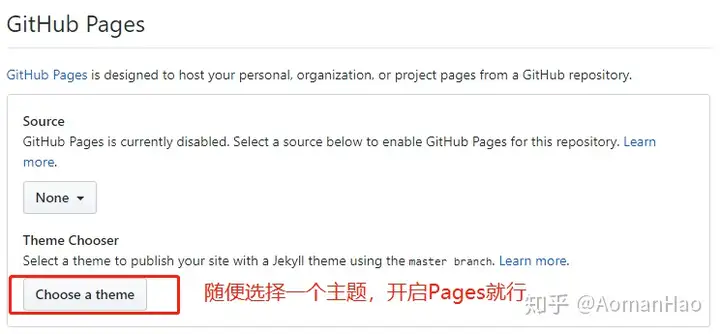 设置页面往下拉, github pages部分,选择一个主题,开启功能,根据显示域名就能访问爱礼页面了
