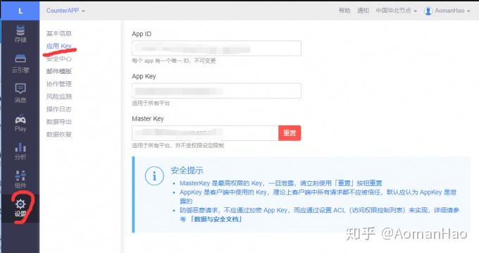 点击设置 > 应用Key 复制App ID 和 App Key