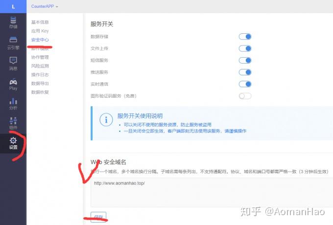 separated_meta: trueWeb安全性 为了保证应用的统计计数功能仅应用于自己的博客,你可以在应用 > 设置 > 安全中心的Web安全域名中加入自己的博客域名,保证数据的调用安全。