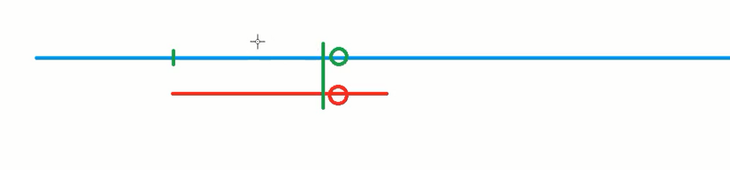 就相当于每次都只挪动一个位置去匹配下一位。红色和绿色圆圈说明这个位置不匹配,将红色短线向右移动一个位置重新匹配。