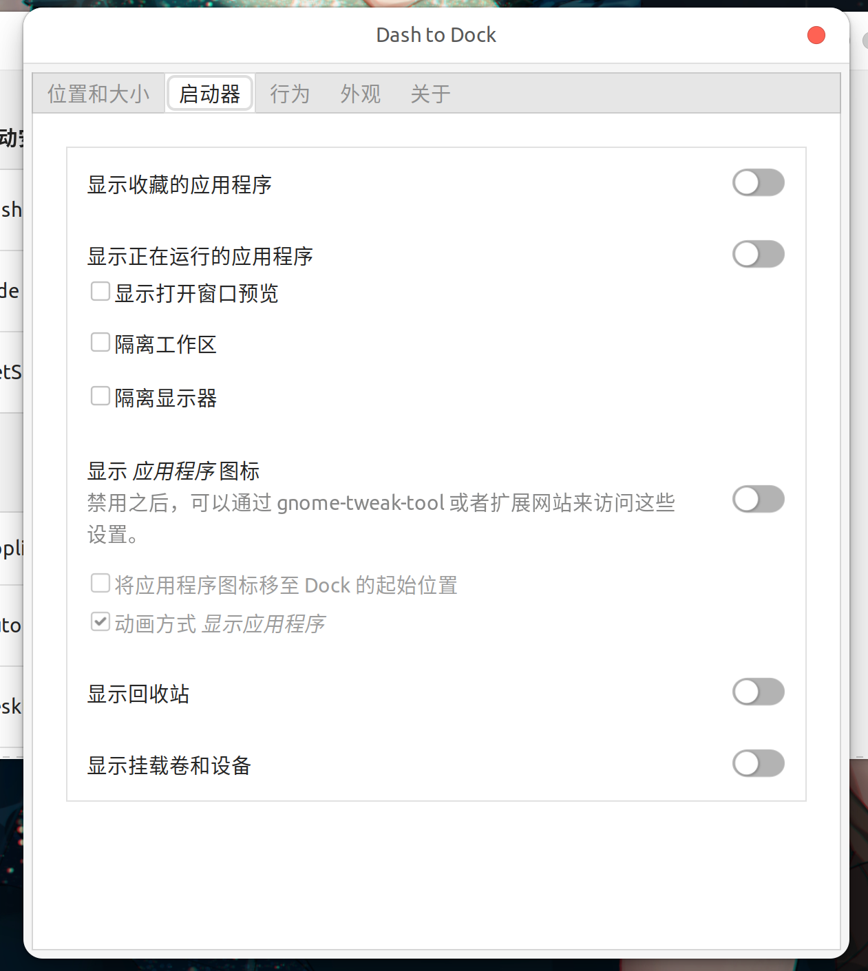 主要是这个拓展进行主题的设置 - dash to dock