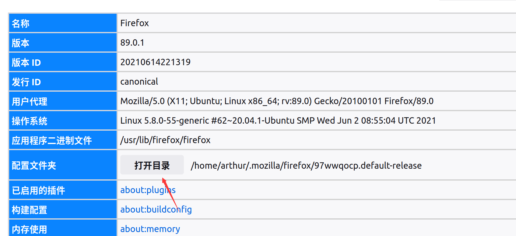 打开 Firefox 浏览器,在地址栏输入:about:support