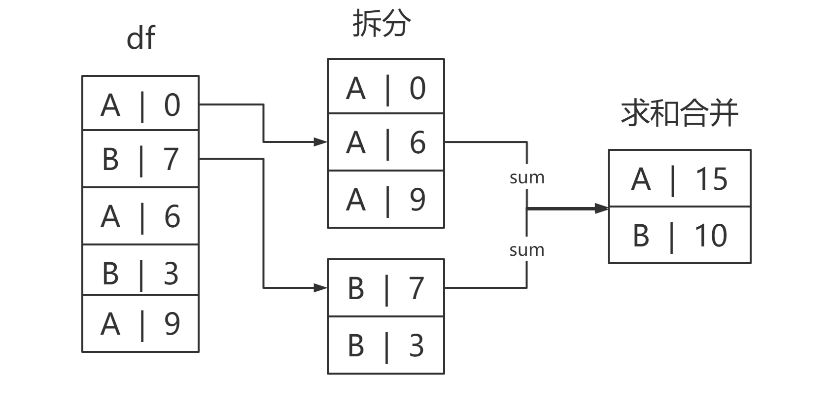 所谓的groupby就是一个拆分再合并的过程,就如下图所示: