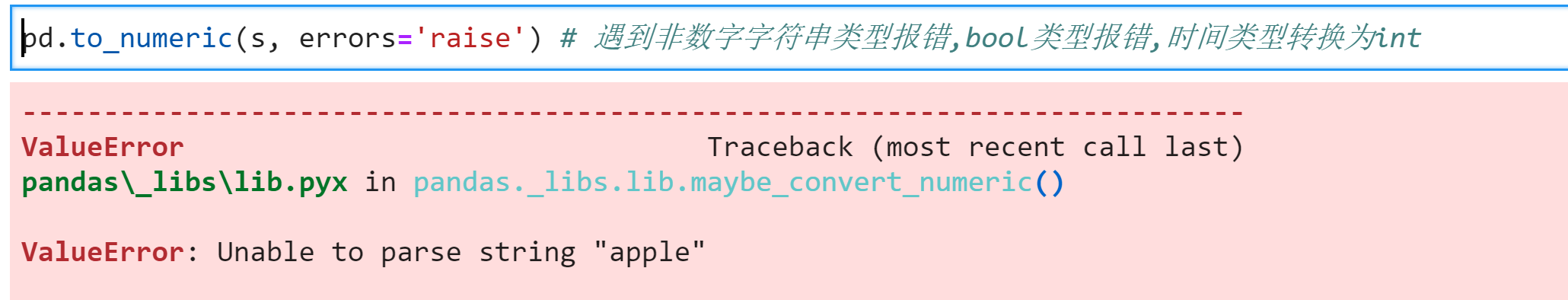 执行raise会报错,因为该数据里面有非数字,结果如下: