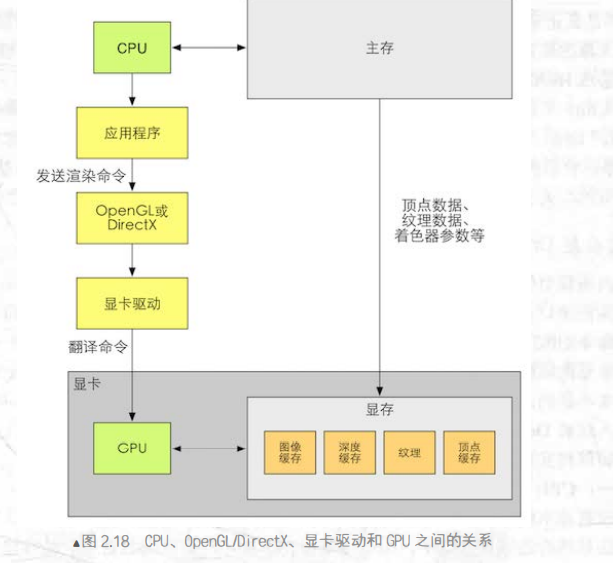 一个应用程序向这些接口发送渲染命令,而这些接口会依次向显卡驱动发送渲染命令,这些显卡驱动是真正知道如何和GPU通信的角色,正是它们把OpenGL或者DirectX的函数调用翻译成了GPU能够听得语言,同时它们也负责把纹理等数据转换成GPU所支持得格式。