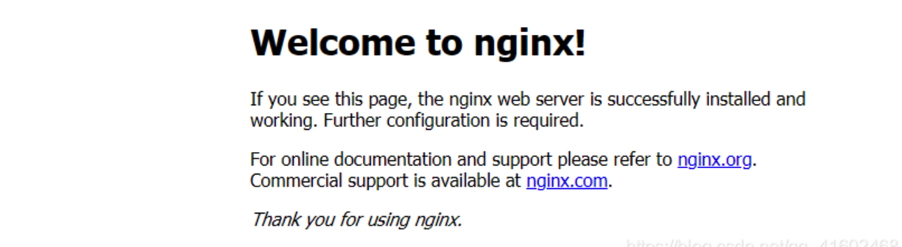 6、最后打开浏览器,输入虚拟机的Ip地址加80端口(Nginx默认的端口号为80,可以不填),如果出现如下页面证明Nginx安装并启动成功。如果没有出现下面的页面,请检查对应虚拟机的防火墙是否关闭。