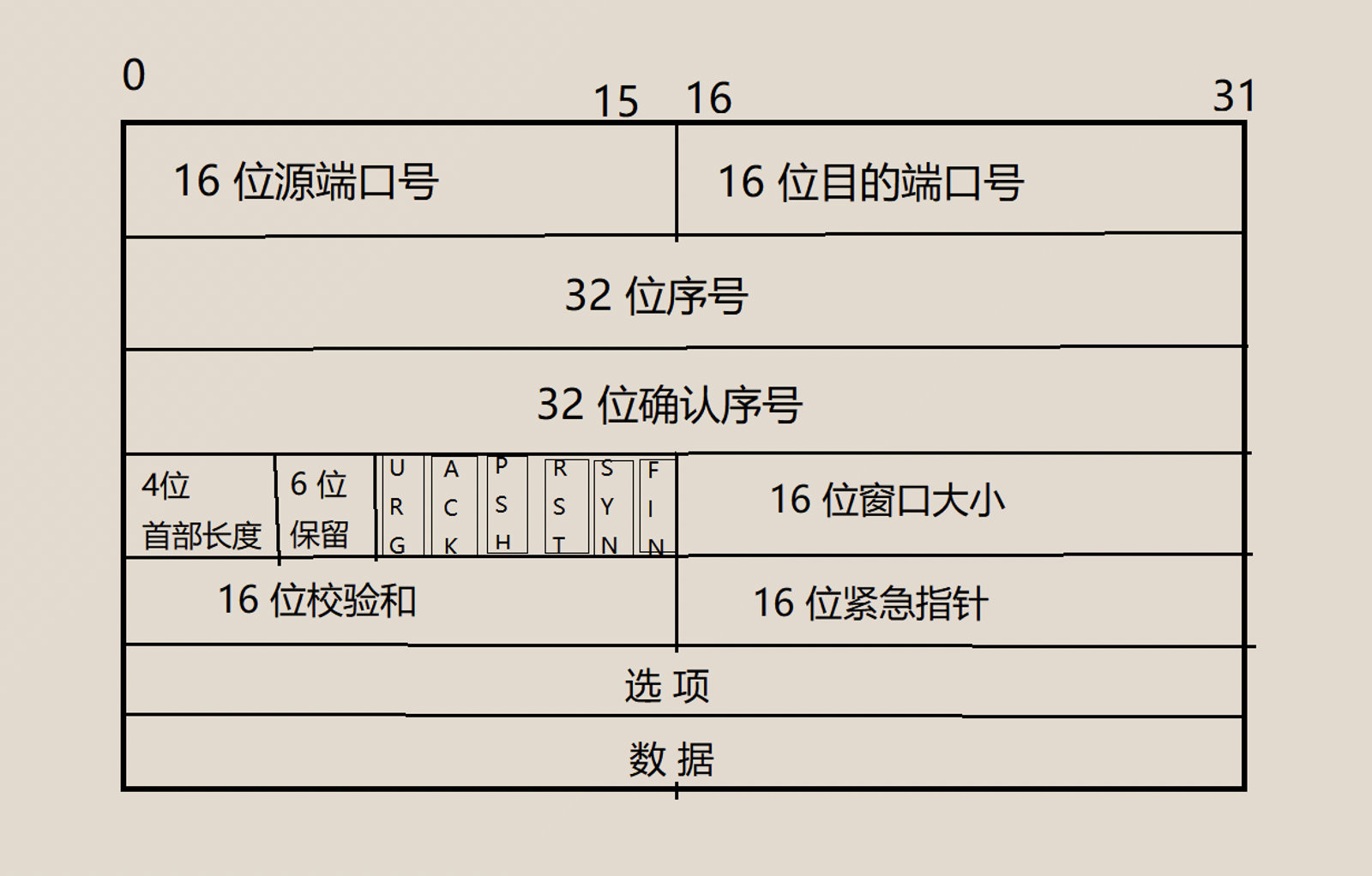 - 4位首部长度: 表示该tcp报头有多少个4字节(32个bit)