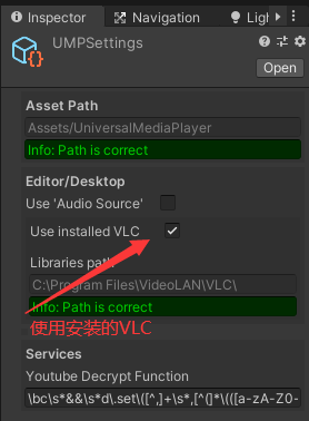 解决办法是找到插件里面的Resources/UMPSettings/Use installed VLC 勾选上