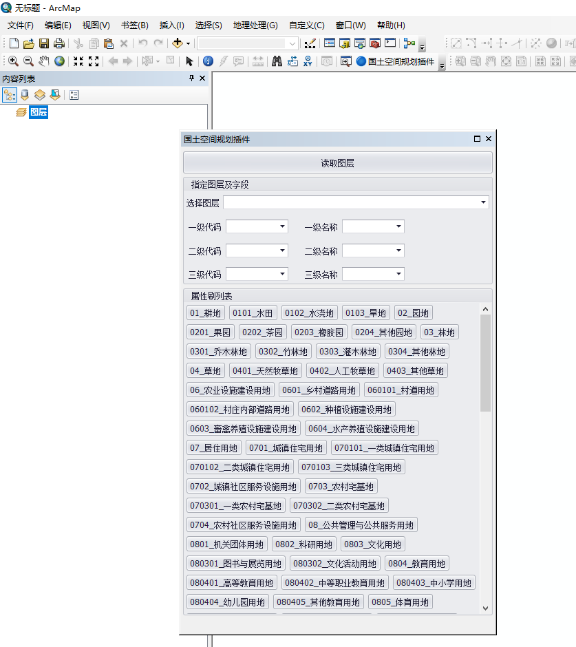 本插件基于ArcGIS10.4 Addin+VS2015开发,实现国土空间规划代码名称属性刷计算。实现高效正确赋值。