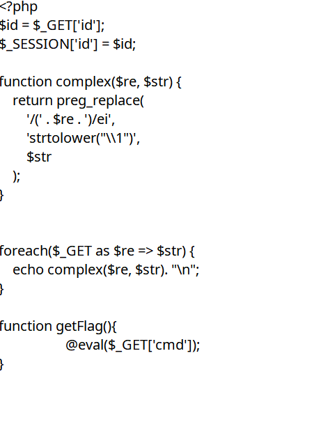 之后\S就是$re \(str就是\){getFlag()},然后传入了cmd参数并执行就得到了flag,为什么不使用.呢,因为他匹配的是所有,会匹配到其他的。