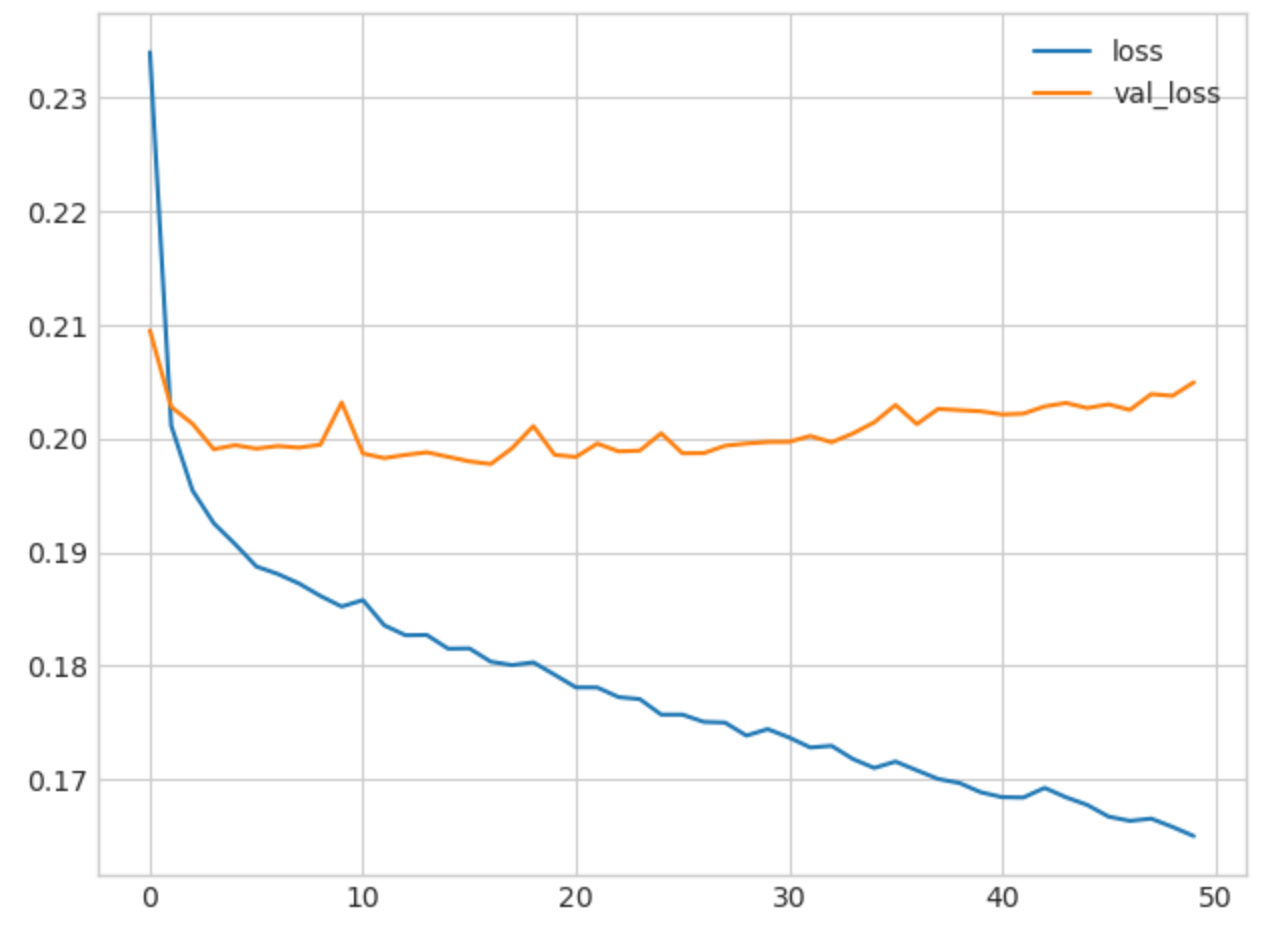 如图, 像这种损失函数变化缓慢甚至不减反增的情况表明出现了过拟合, 通常采用提前终止的方法.