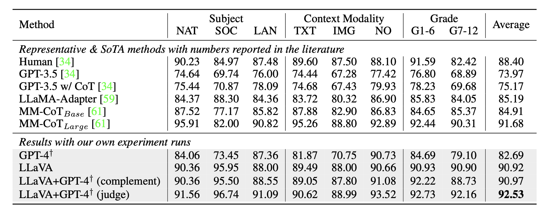 LLaVA 得出了与 SoTA 接近的 90.92% 准确率。