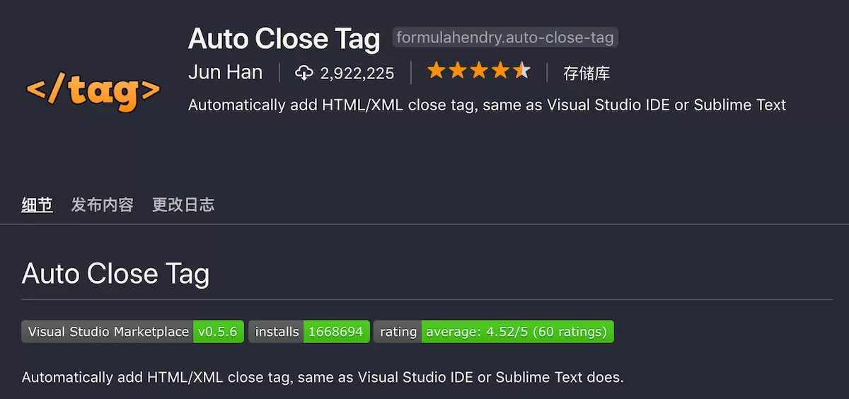 Auto Rename Tag 尾部闭合标签同步修改