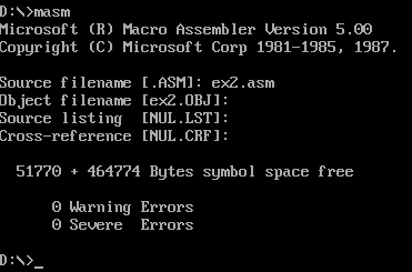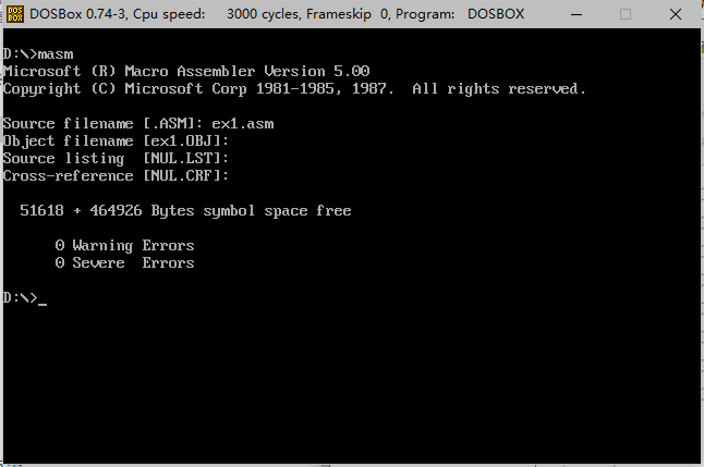 2.使用masm工具对ex1.asm进行汇编: