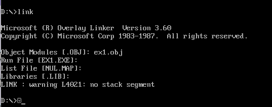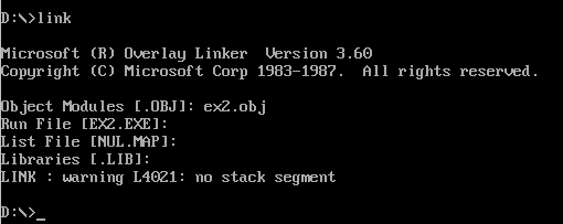 LINK : warning L4021 : no stack segment