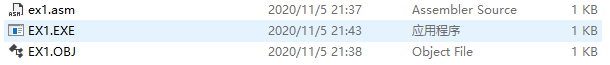 1.首先创建ex1.asm文件如下: