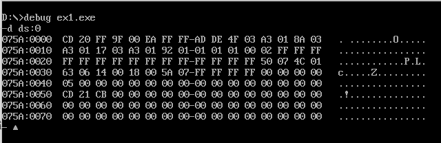 首先查看程序段前缀PSP的256个字节中的内容:
