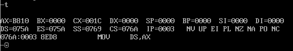 使用t命令,执行 mov ds,ax