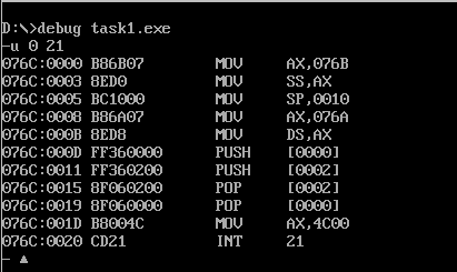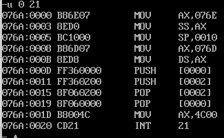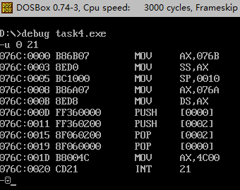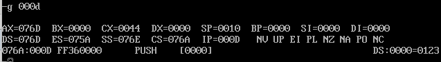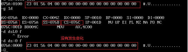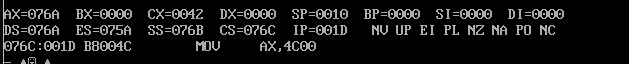 执行命令,得到CS=076AH,SS=076EH,DS=076DH