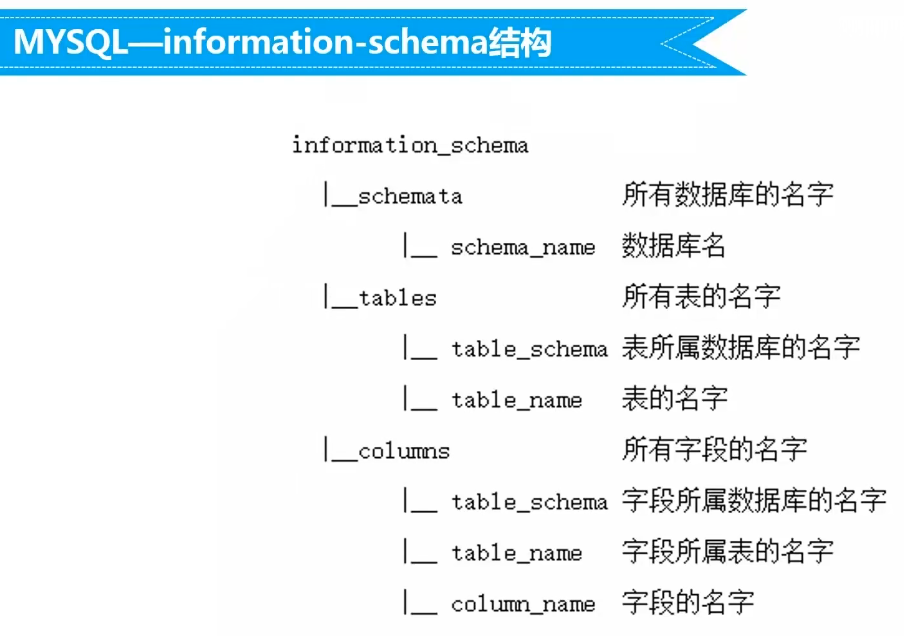 在MySQL数据库5.0版本以上都会包含一个information_schema数据库,其结构如下: