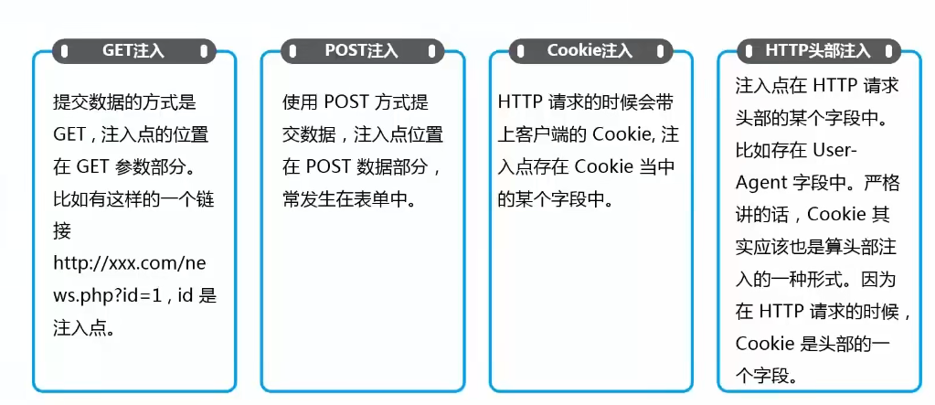 select * from user where id= 1; #整形闭合 select * from user where id='1'; #单引号闭合 select * from user where id="1"; #双引号闭合 select * from user where id=('1'); #单引号加括号 select * from user where id=("1"); #双引号加括号