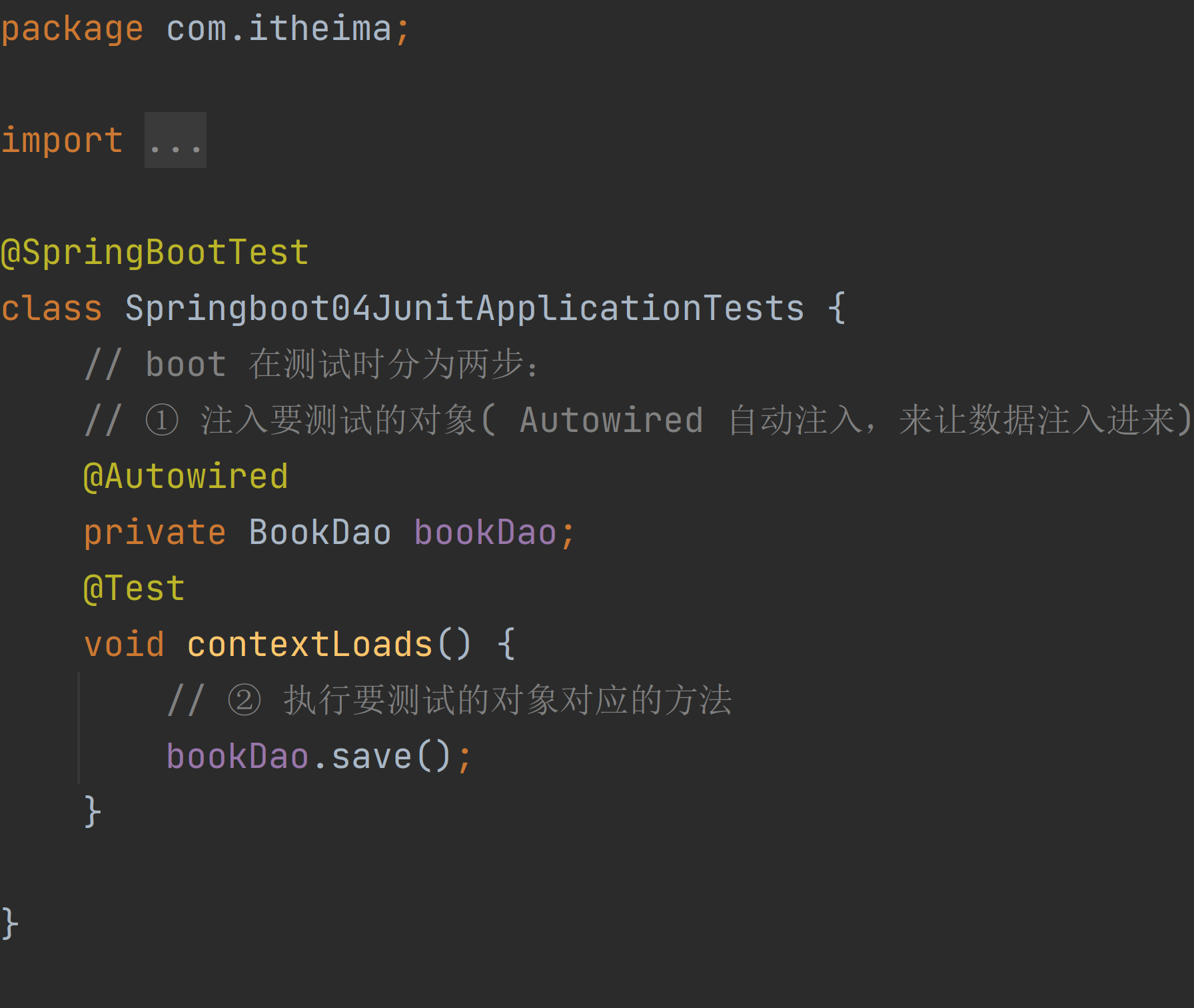 作用:设置 JUnit 加载的 SpringBoot 启动类