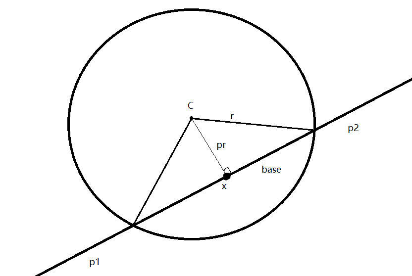 $base=\sqrt{r^{2}-|pr-c|^{2}}$