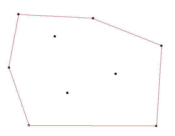 包含点集$p$的面积最小的凸多边形成为$p$的凸包(如下图,红色部分即为凸包)