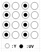 另外需要注意的是,YUV420在计算过程中是需要采样的,每4个Y共同使用一组UV,而这组UV则是取的2x2左上角的点——(0,0);代码如下: