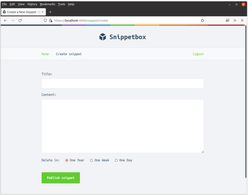 在本书中,我们将构建一个名为Snippetbox的Web应用程序,它允许人们粘贴和共享文本片段。