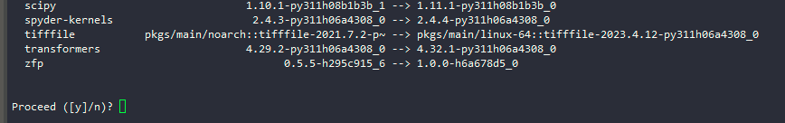 执行指令,来更新conda,等待跳出更新列表,输入y,进行更新