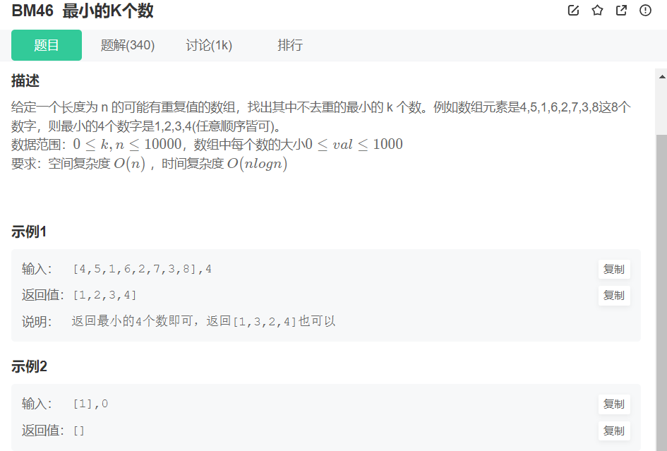 最小的第k个数