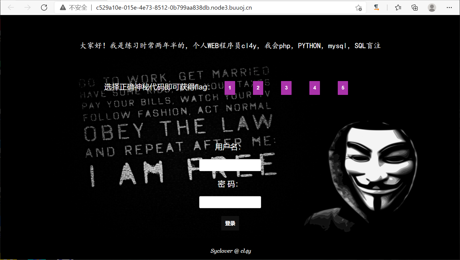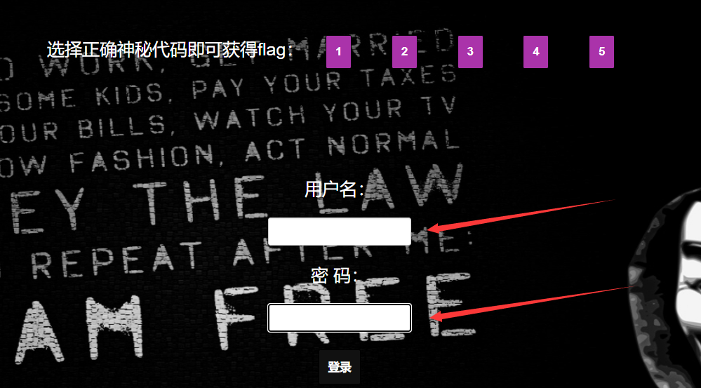 既然说选择神秘代码即可获得flag那就把1到5挨个点了边(虽然没指望flag真藏那里面但是先按照出题人想法来,看能不能找到些提示省些自己摸索的时间(实际上提示博主笨比一个都没察觉))。