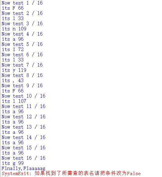 sys.exit("如果找到了所需查的表名请把条件改为False")