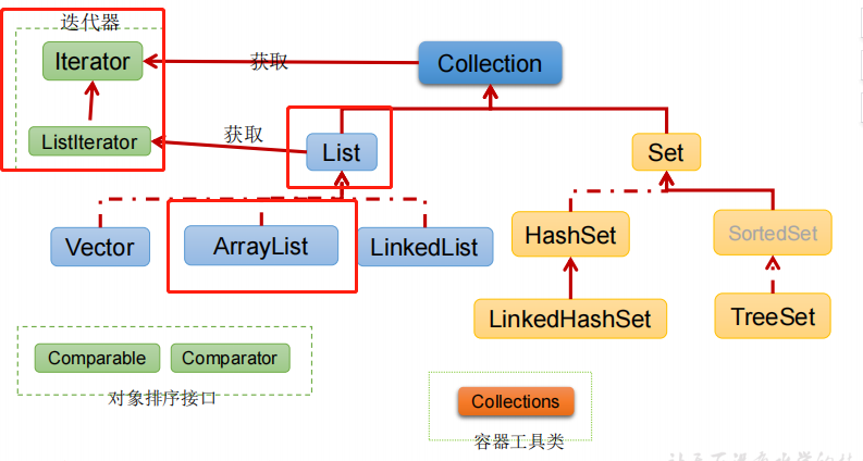 重点在于List中的ArrayList以及迭代器的使用,而Set使用的较少,只做一定的源码了解即可