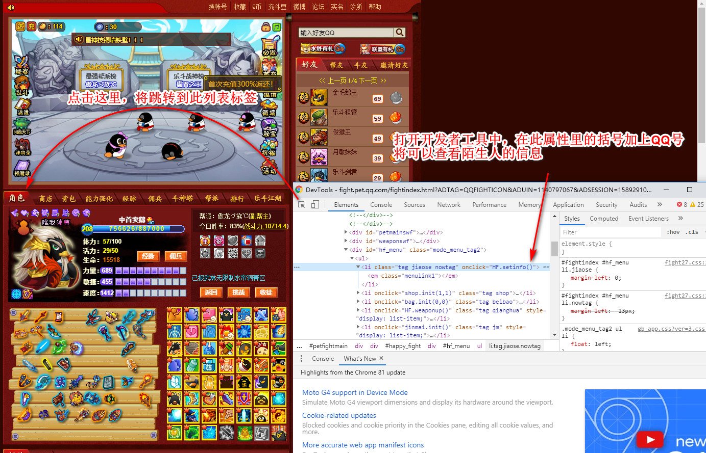 【网页技巧】【游戏】【Q宠大乐斗】查询非好友用户的信息