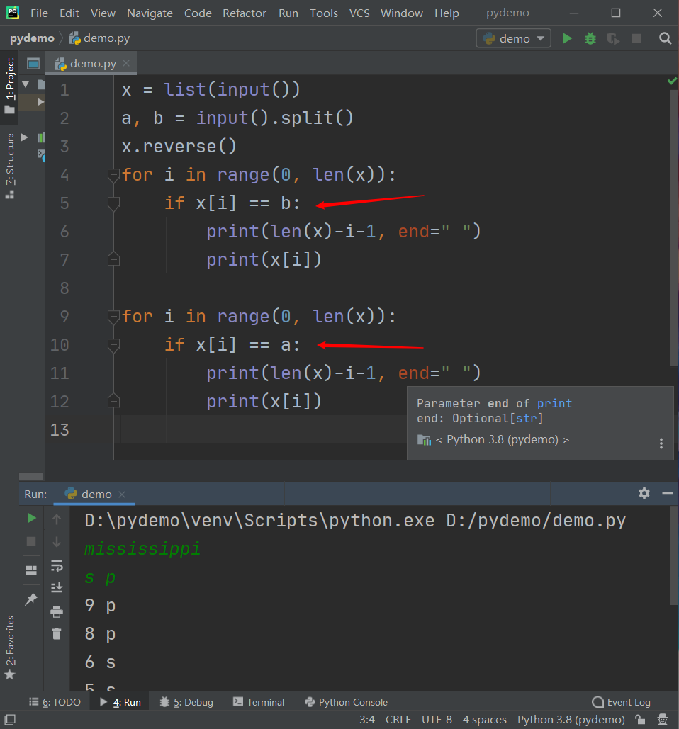 输入一个字符串,再输入两个字符,求这两个字符在字符串中的索引。