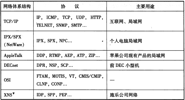 下面是一些以前常用的协议(因为现在基本都是TCP/IP协议):