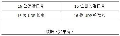 与TCP协议不同,UDP协议是非面向连接的不可靠协议,因此没有了SYN等处理两端等待或连接的报文段,相比之下,UDP的报文格式更为简单,主要由报文头(由均16位的源端口号、目的端口号、UDP长度和UDP校验和组成)和具体传输数据组成。如图所示: