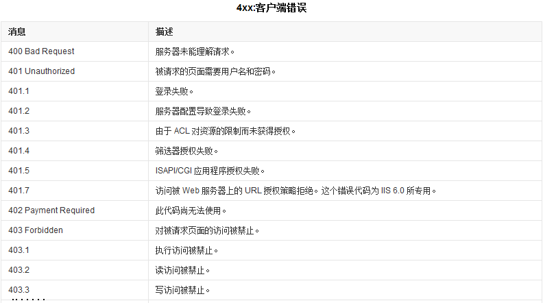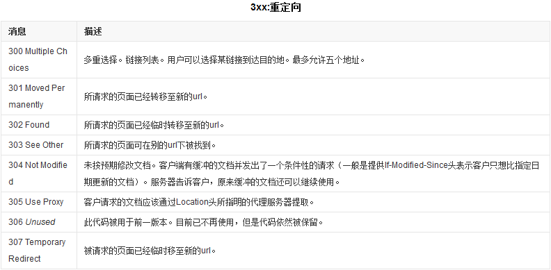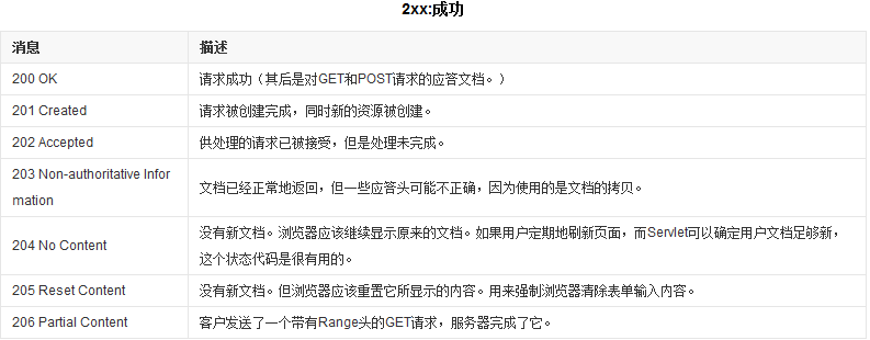 响应组成此处也不再赘述,值得注意的是状态码,它以清晰明确的数字告诉客户端本次请求的处理结果。 常见的状态码有: