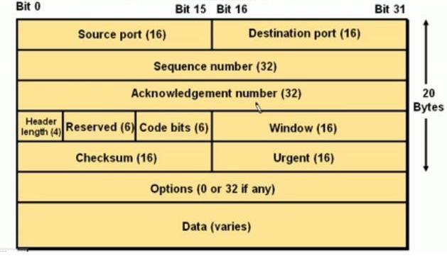 - Source Port和Destination Port:分别占用16位,表示源端口号和目的端口号;用于区别主机中的不同进程, 而IP地址是用来区分不同的主机的,源端口号和目的端口号配合上IP首部中的源IP地址和目的IP地址就能唯一 的确定一个TCP连接;