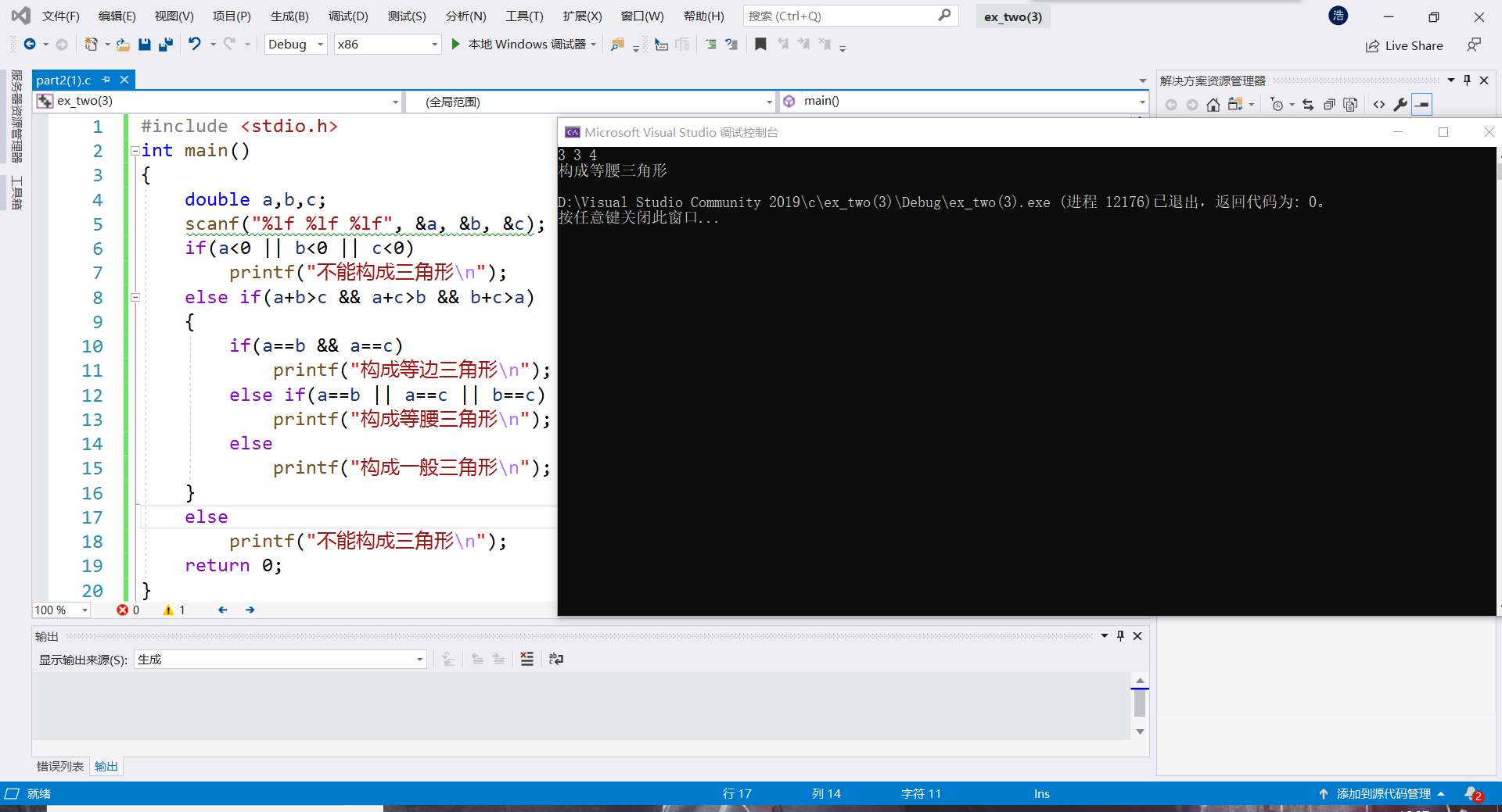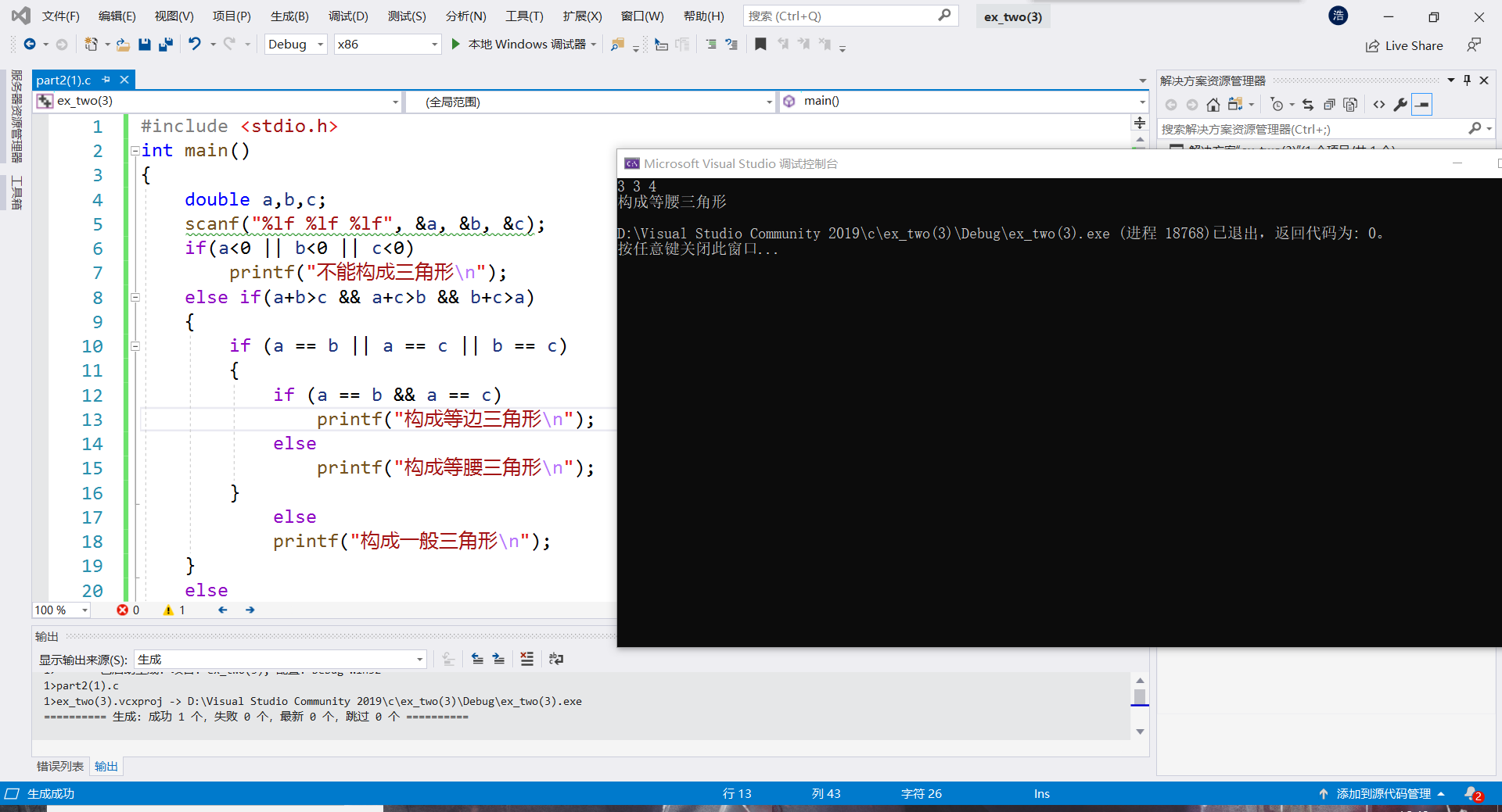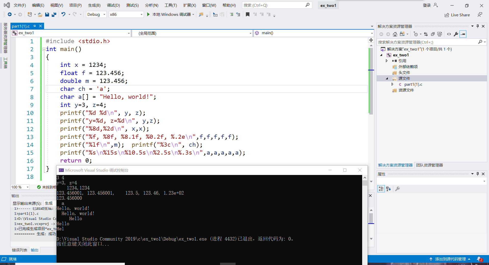 part1第二个程序:错误:第七行少地址符&;第十一十二行应为“%lf”