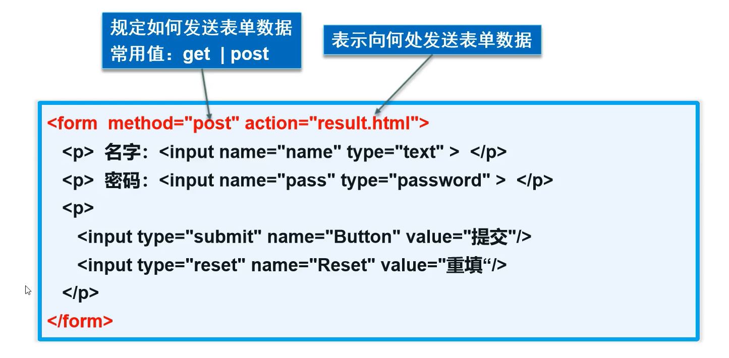 action:表单提交的位置,可以是网站,也可以是一个请求处理地址