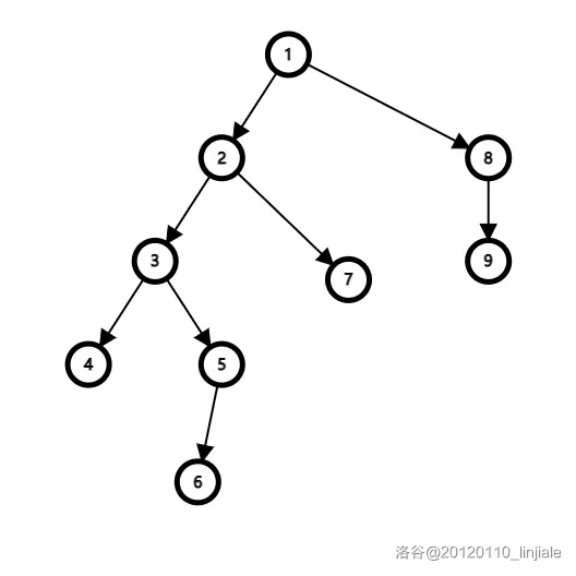蓝边即为横叉边,因为它指向了当前生成树的另一个节点,但不是当前节点 \(9\) 的祖先。