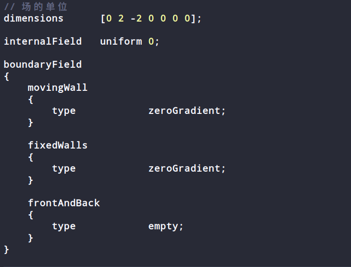内部场可以采用一个值就可以描述的uniform(均一场);或者每个网格的数据都需要指定的nonuniform(非均一场)