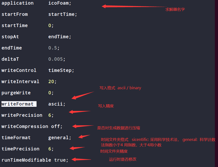 writeControl 中,每个固定timeStep 输出,我们也可以指定为runTime 来指定每多少个物理时间间隔来写结果文件