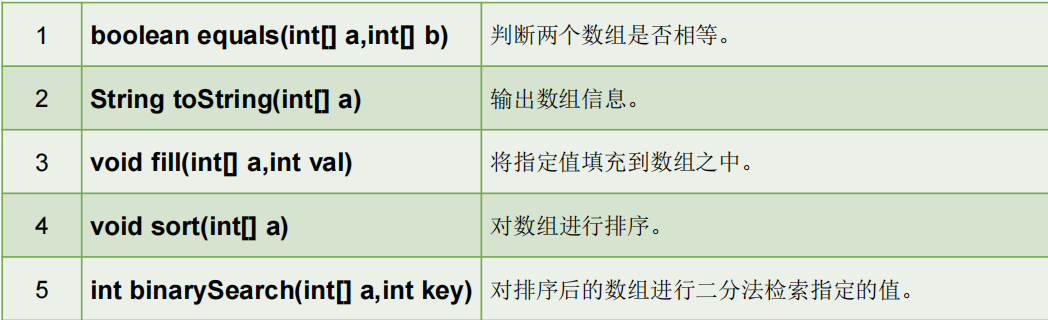 //1.boolean equals(int[] a,int[] b):判断两个数组是否相等。