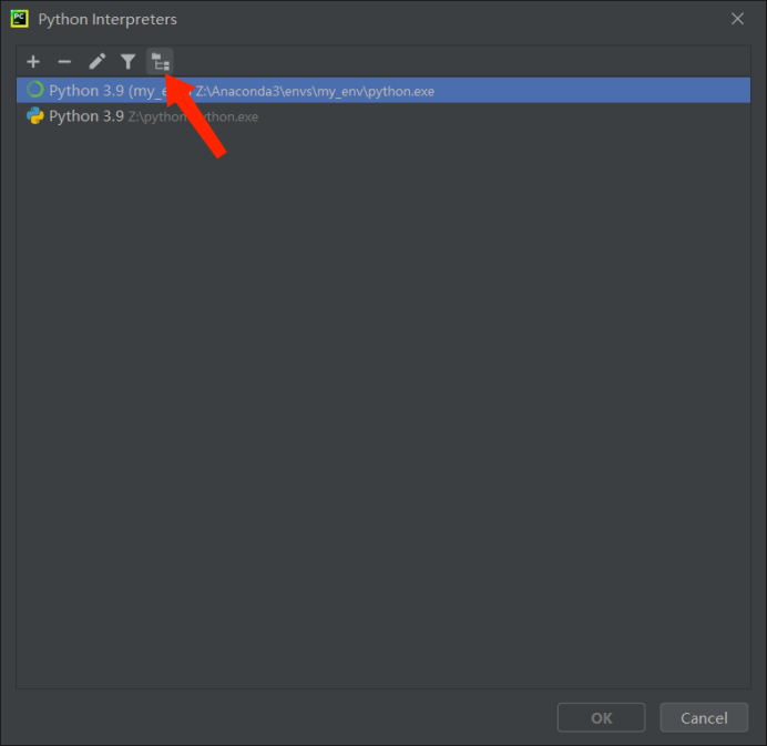 可以看到几个环境,笔者现在要用的是my_env,选中你要找的环境后,点最右边那个按钮。